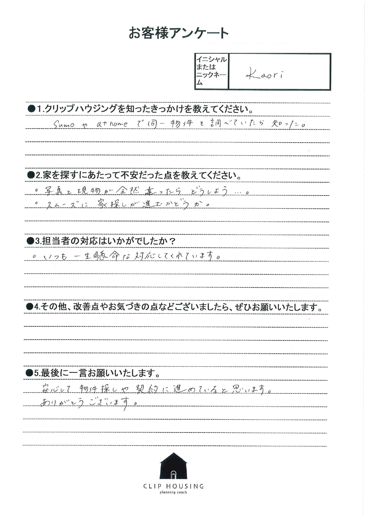安心して物件探しや契約に進めていると思います。ありがとうございます。